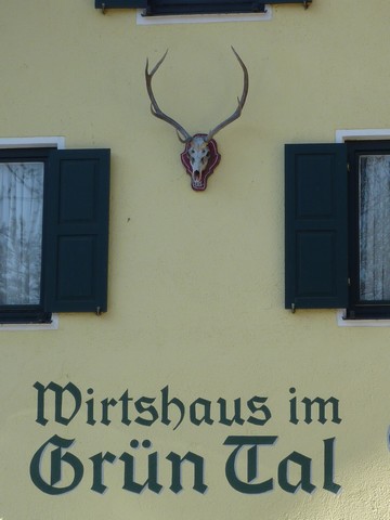 Innen sind die Stuben mit reichlich Geschirr, Jagdgegenständen oder Sammlungen von alten Spazierstöcken und Pfeifenköpfen geschmückt, was für die passende Atmosphäre sorgt. Doch das schönste am ‚Grüntal‘ ist der gemütliche Biergarten durch den das Bogenhauser Brunnbacherl leise plätzschert. Hier findet man im Sommer über 300 schöne schattige Plätze, die zu einem kühlen Bier und einem herzhaften Essen einladen.