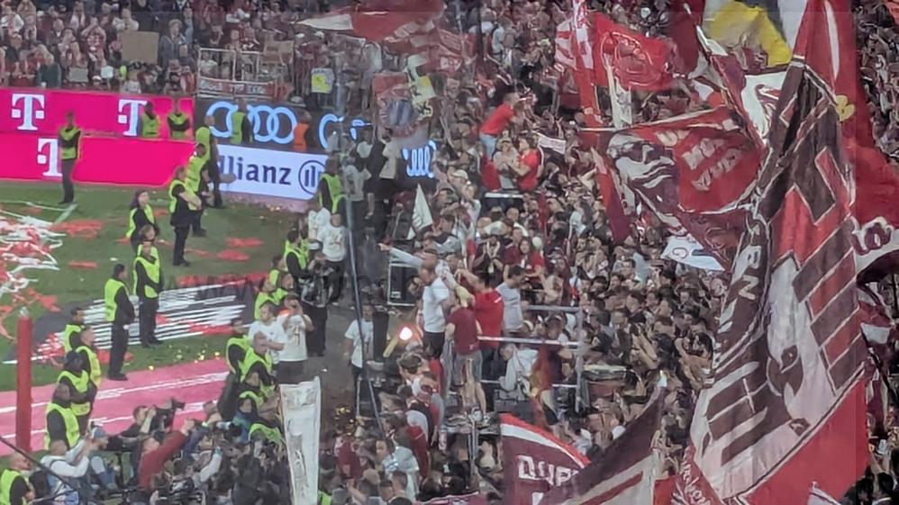 In einem Spalier seiner Kollegen hielt Müller seine Abschiedsrede gemischt aus Ernst und Witz. Zudem feierte der FC Bayern ausgelassen die 34.Deutsche Meisterschaft nach einm 2 zu 0 Sieg gegen botussia Mönchengladbach Stürmer Star Harry Kane hat damit endlich seinen ersten Titel gewonnen.