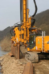 + dem Arbeitsgerät: Vibratoren (zum Rammen für Pfahlgründung, Zaunbau und Spundbohlen zur Absicherung des Erdreichs), (Dreh)Bohrantriebe, Mischantriebe, Press-Systeme und Dieselbären (zum Schlagen, mit verschiedenem Gewicht), Freifallhämmer – in Schnellwechselanlage.