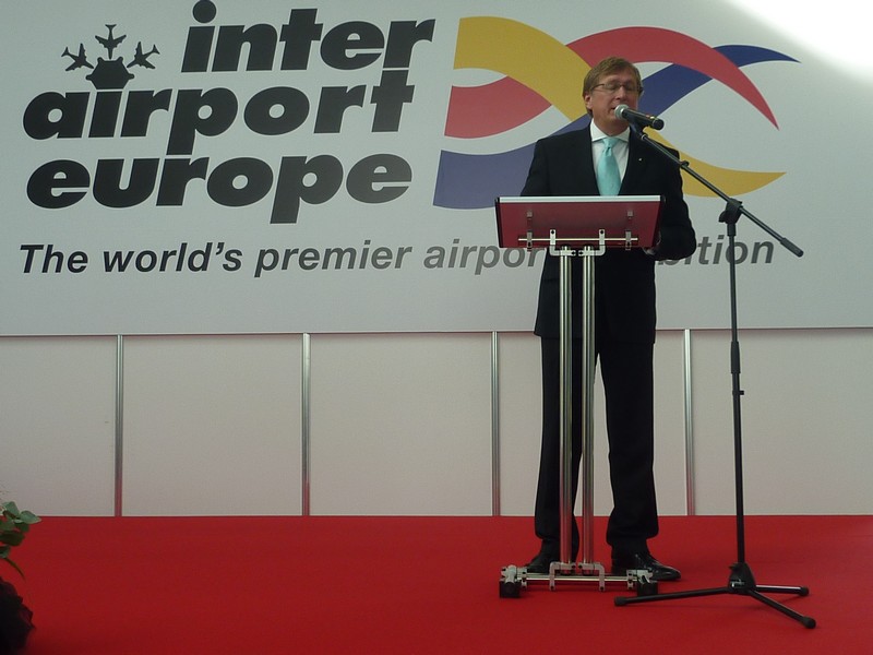 Herr Dr.Michael Kerkloh spricht zur Eroeffnung der 18. Inter Airport Europe in der Neuen Messe Muenchen www.muenchenfenster.de