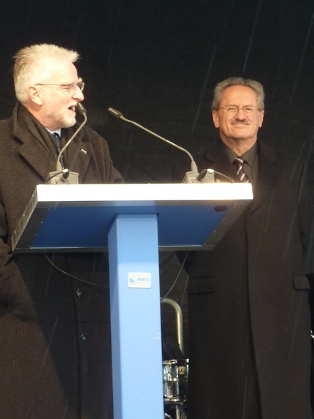 Herr Hernert Koenig Chef der MVG/SWM bei der Ansprache Vollständige Größe 450 × 600 Pixel Jungfernfahrt der Tram Linie 16 nach St. Emmeram durch die Mae West Vorheriges Bild Nächstes Bild