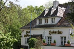 Im linken Teil des Komplexes ist eine Gaststätte (mit international wechselnder Küche – z.Zt. griechisch) untergebracht sowie der unter Denkmalschutz stehende große holzgetafelte Festsaal von „Hubertus“ mit historischen Gemälden zur Jagd (wo u.a. eine schöne Weihnachtsfeier stattfindet, bei der ich diesmal Gast sein durfte).