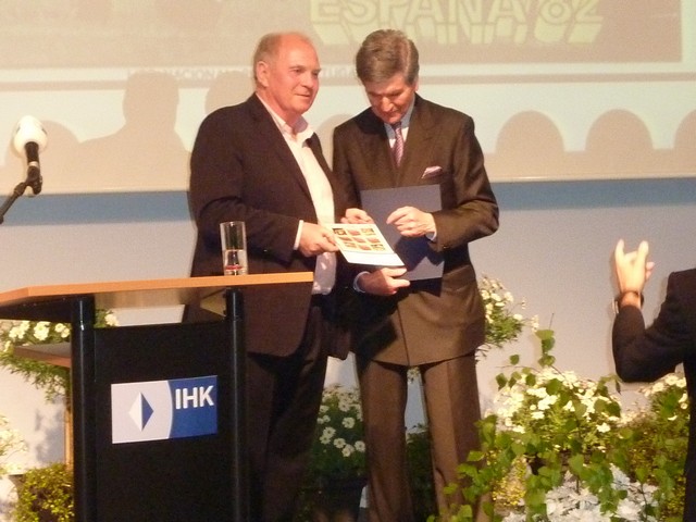 Als Ehrengast bei dem IHK-Empfang 2012 erwies sich Uli Hoeneß, Präsident des FC Bayern als gewandter Redner. Mehr als 250 Persönlichkeiten aus Politik und Wirtschaft strömten zur IHK, um Hoeneß im Gespräch mit IHK-Präsident Erich Greipl zu erleben. Tenor: Zwischen Sport und Wirtschaft bestehen große Gemeinsamkeiten. „Es unterscheidet sich nicht, ob ich Nürnberger Rostbratwürste oder 20.000 Eintrittskarten für den Fußball verkaufe, ich muss ein gutes Produkt haben“, betonte Hoeneß. „Es ist extrem wichtig, dass du dich um deine Leute kümmerst, dass Du eine Art Patron bist“, unterstrich der Präsident des FC Bayern. Das wertvollste Gut eines Unternehmens seien seine Mitarbeiter.